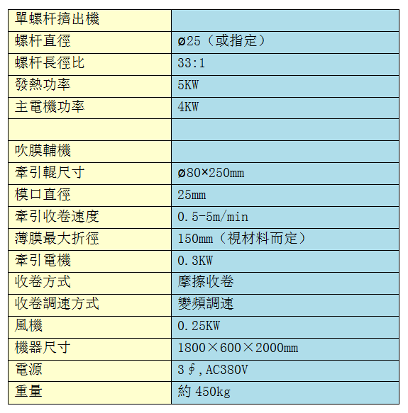 簡介:擠出吹膜是指在一定溫度,一定剪切力的作用下使塑膠熔體連續的通過口模被擠出,由壓縮空氣吹脹,風環冷卻和變頻牽引而獲得的雙折塑膠薄膜的工藝過程。本機主要用於檢測聚合物材料的吹膜可行性和材料內的膠質狀況,以及有色分散物、控制混合物、擠出物的分散性。